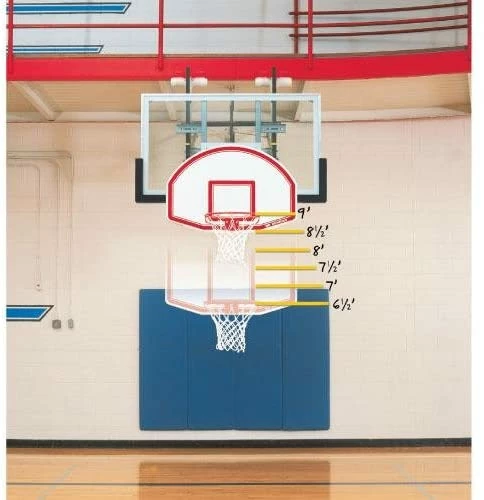 “No matter what the age or skill level of your basketball players, you can now convert your existing 10′ rims to the perfect height without the addition of built-in height adjusters. Youth mini goals go on and off with ease. Just flip a lever to lock entire backboard and rim to any make or model of existing rims. Lightweight, 40 lbs. total weight. One person installation with no tools. Durable 48″L x 32″W ABS molded backboard with official-sized goal and shooters square. Fold for easy carrying and storage. Not suitable for hanging from rim. Adjusts from 6-1/2′ to 8-1/2′ in 6″ increments”